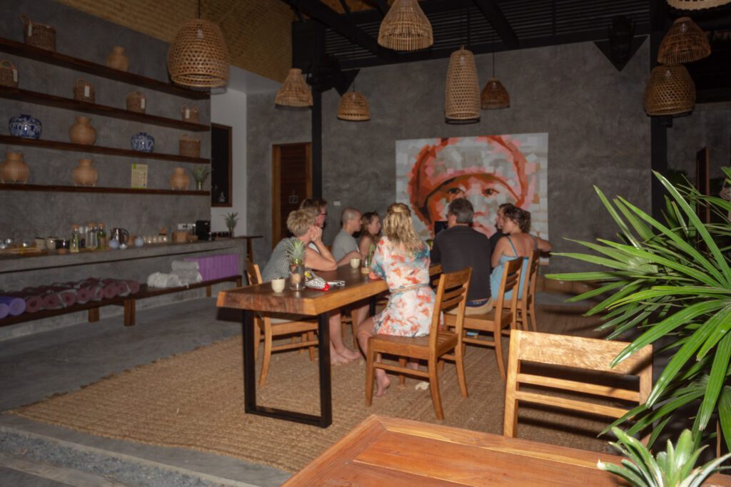 Meals are taken in open, shaded spaces. There’s room to sit alone or gather as a group. The spaces feel open without being empty — the kind of place where conversations happen softly and naturally.